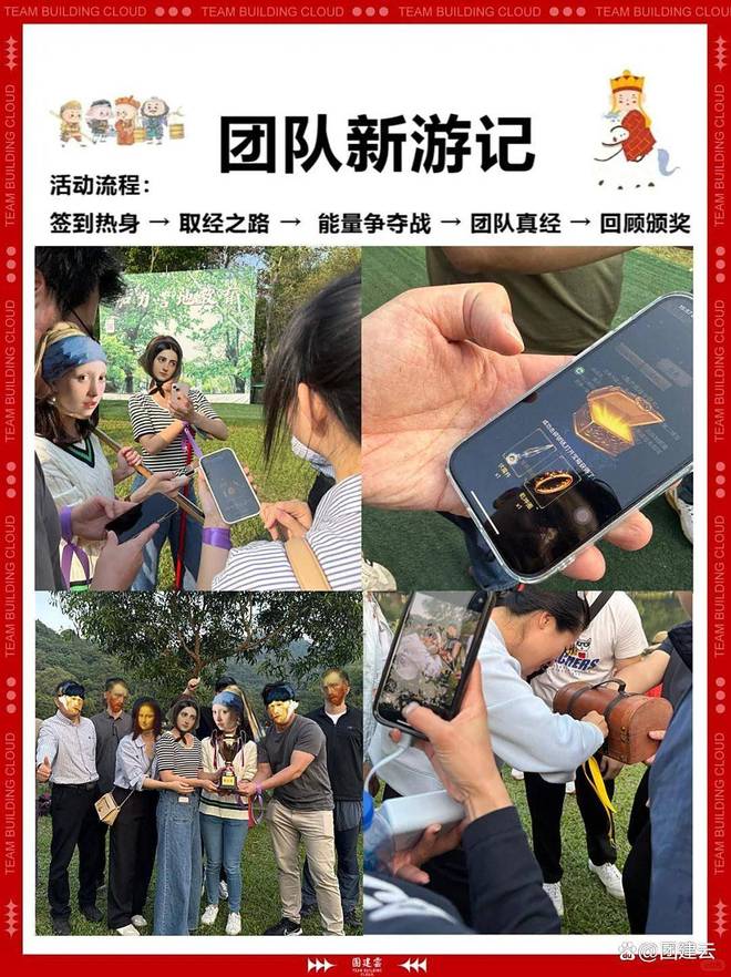 活动以西游故事为背景 , 以体验式定向活动为内容 ,通过线上操作与线下实景互娱 ,融入AR技术 ,还原西游取经关卡挑战 ,以园区定向寻宝的方式给团队带来一次沉浸式的体验。