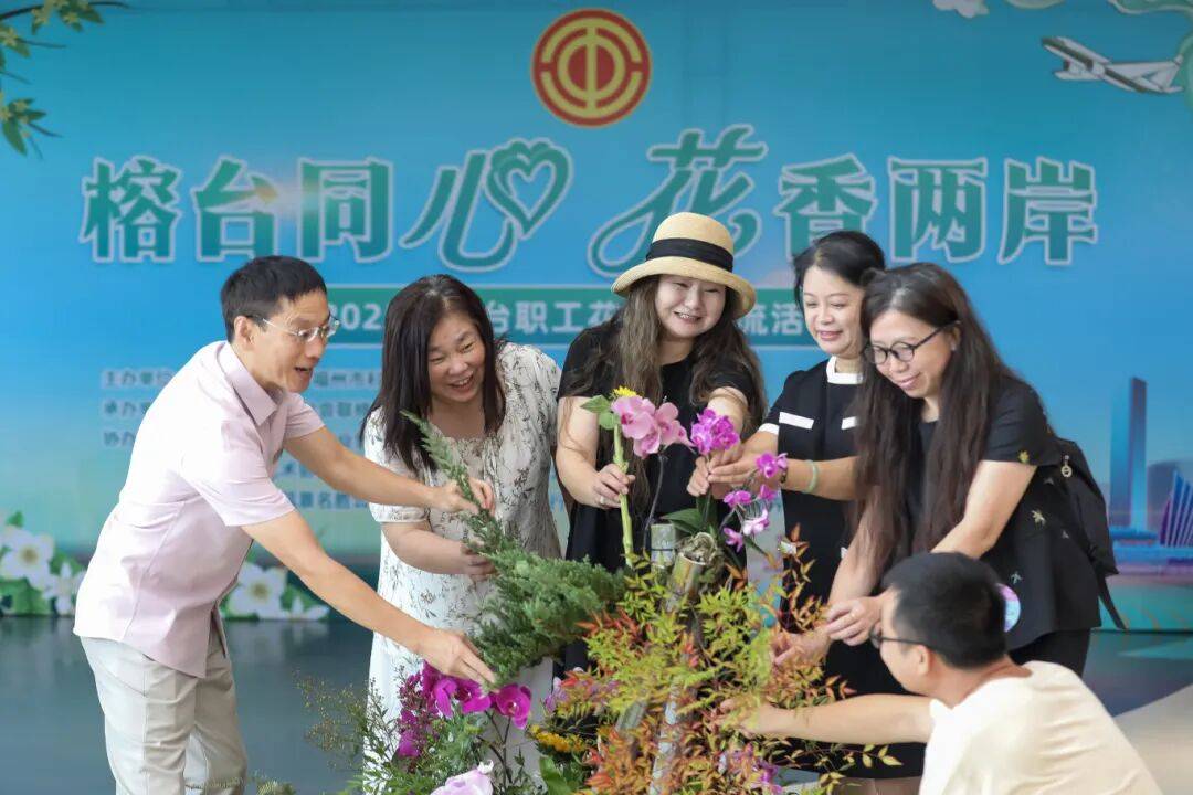 ,吸引众多职工群众驻足观赏、交流探讨,成为活动焦点。“两岸花艺各有特点,但都承载着中华花文化的基因,这种体验让我们更懂‘同根同源’的含义。”