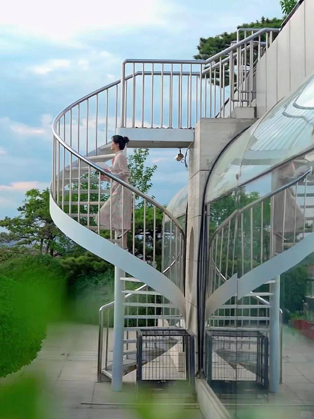 在她身后,是一片绿意盎然的空中花园,各种奇花异草争奇斗艳,仿佛置身于城市中的一片世外桃源。
